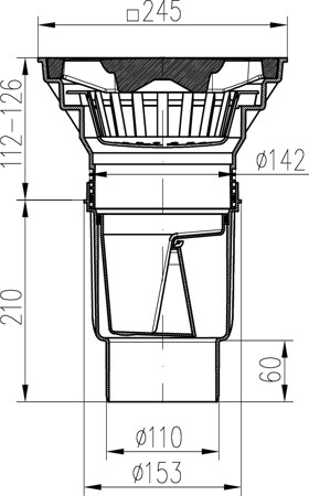 Desagüe de alcantarillado inferior D110-250 NEPTUN, rejilla de hierro fundido SPACE