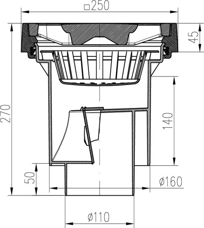 Desagüe de alcantarillado inferior D160/D110-250 válvula seca, marco de hierro fundido, rejilla SUN con cerradura