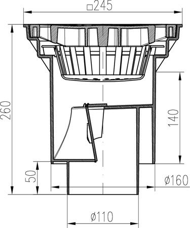 Desagüe de alcantarillado inferior D160/D110-250 válvula seca, rejilla de plástico SUN