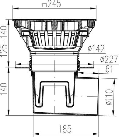 Desagüe lateral D110-250 NEPTUN, collar, rejilla de plástico SUN