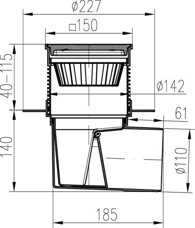Desagüe lateral D110, válvula seca, collar, rejilla de plástico