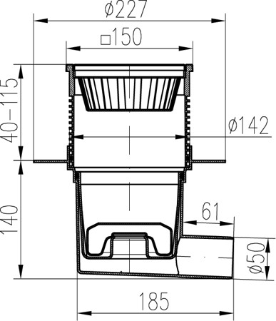 Desagüe lateral D50, NEPTUN, collar, rejilla de plástico