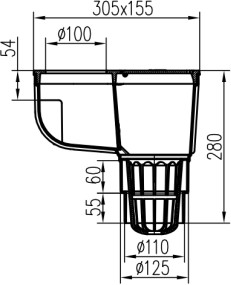 Trampa de sedimentos de tejado inferior D110/D125, superficie de fundición, para bajante D100