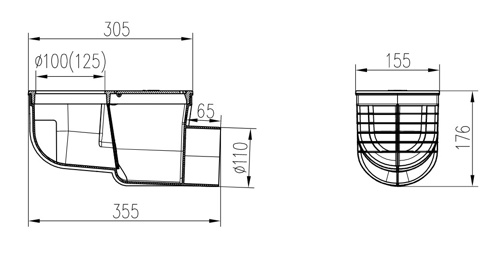 Drenaje de canalización lateral D110, superficie de fundición, para entrada ⌀100