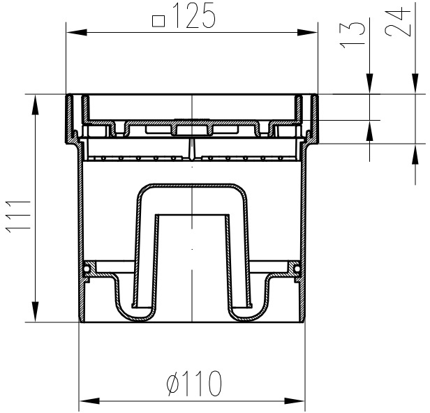 Drenaje de suelo, directo D110, estructura de acero inoxidable, rejilla CERAMICS 125