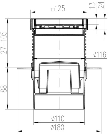 Drenaje de suelo, inferior D110, collar, estructura de acero inoxidable, rejilla CERAMICS 125