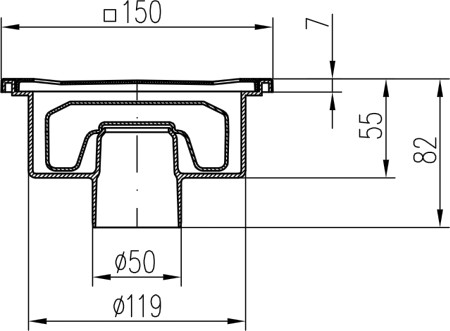 Drenaje de suelo, inferior D50/82, NEPTUN, estructura de acero inoxidable, rejilla SUN