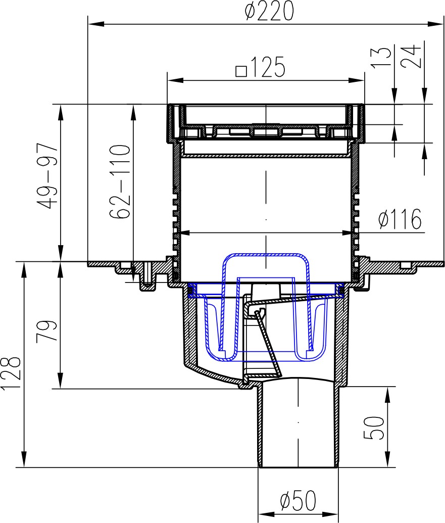 Drenaje de suelo, inferior D50, ala de acero inoxidable, la estructura, rejilla STEEL 125