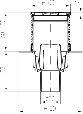 Drenaje de suelo, inferior D50, collar, rejilla de acero inoxidable FACE 100