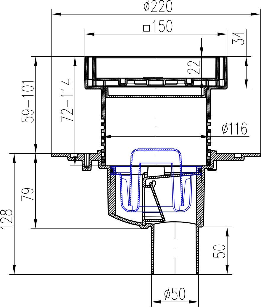Drenaje de suelo, inferior D50, estructura de acero inoxidable, rejilla CERAMICS 150
