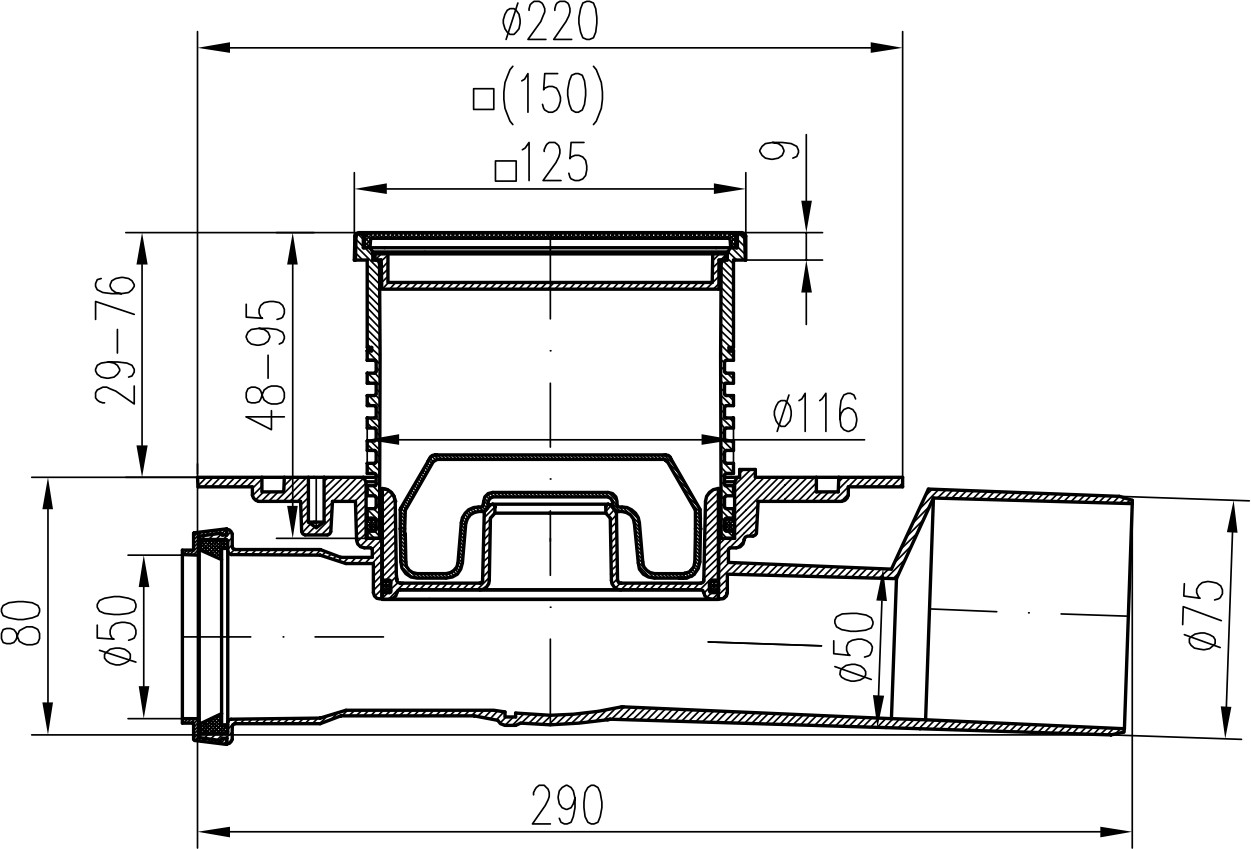 Drenaje de suelo, lateral continuo negro D50/75 NEPTUN, rejilla de acero inoxidable FACE negro