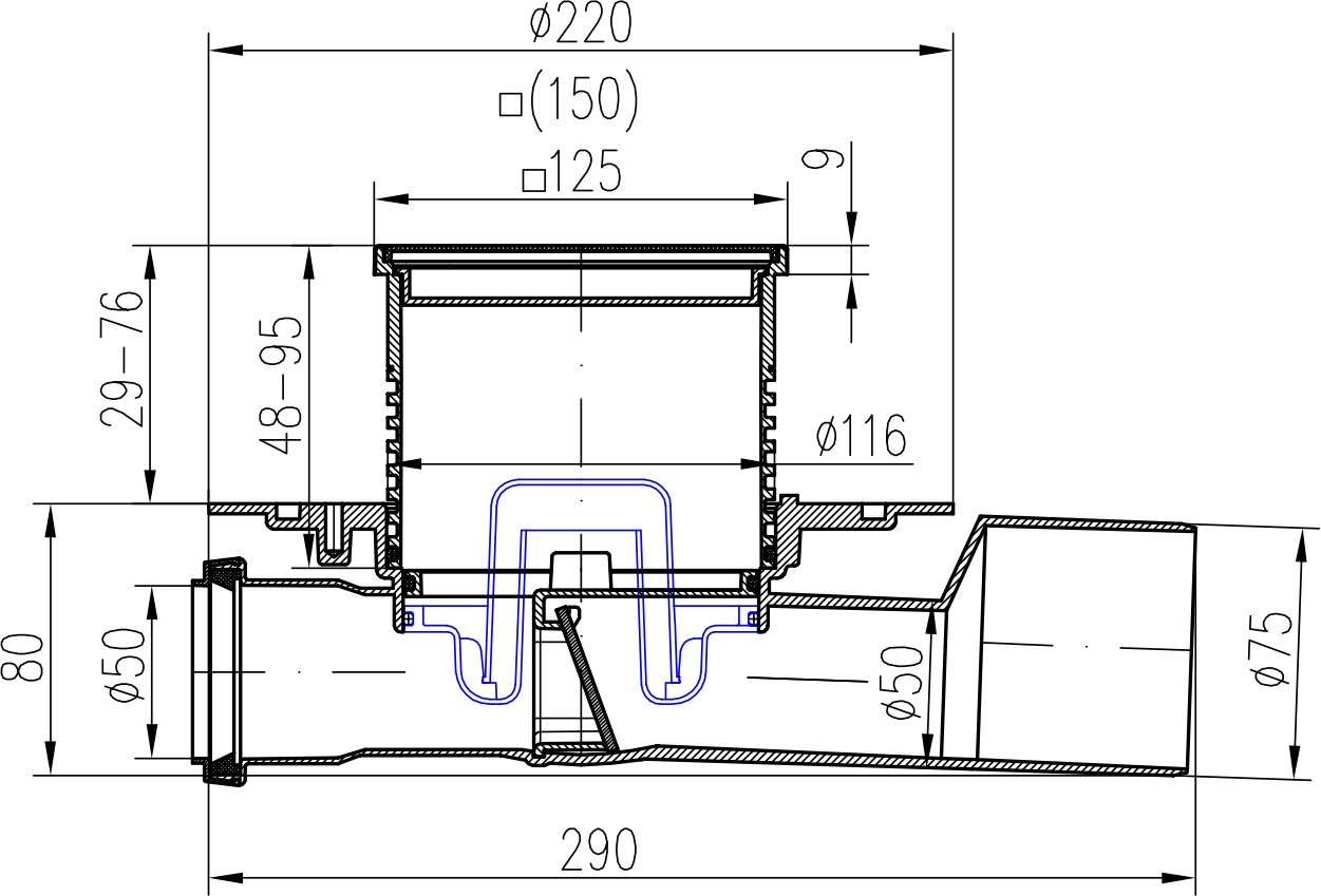 Drenaje de suelo, lateral continuo negro D50/75, rejilla de acero inoxidable LABYRINTH negro