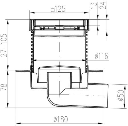 Drenaje de suelo, lateral D50, collar, estructura de acero inoxidable, rejilla CERAMICS 125
