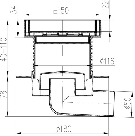 Drenaje de suelo, lateral D50, collar, estructura de acero inoxidable, rejilla STEEL 150