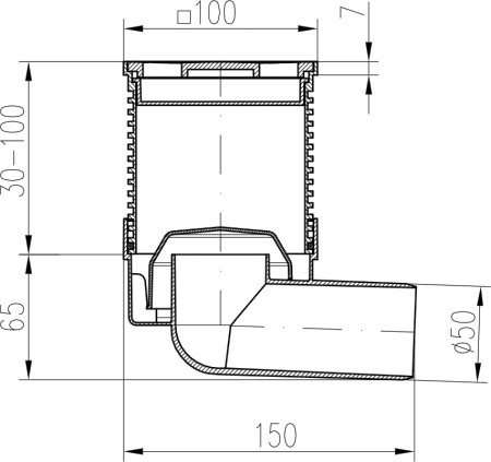 Drenaje de suelo, lateral D50, estructura de acero inoxidable, rejilla LABYRINTH 100