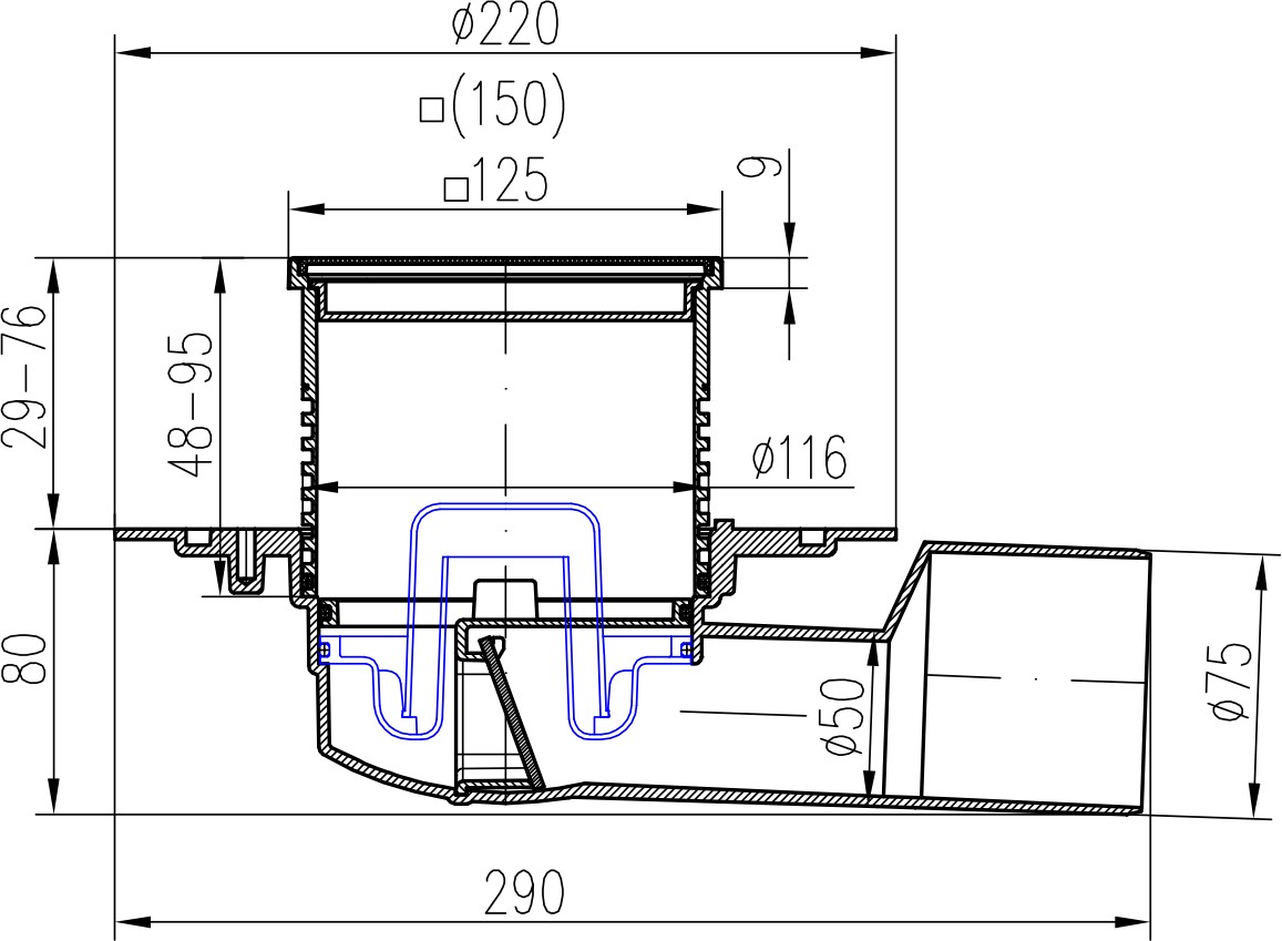 Drenaje de suelo negro, lateral D50/75, ala de acero inoxidable, rejilla LABYRINTH negro