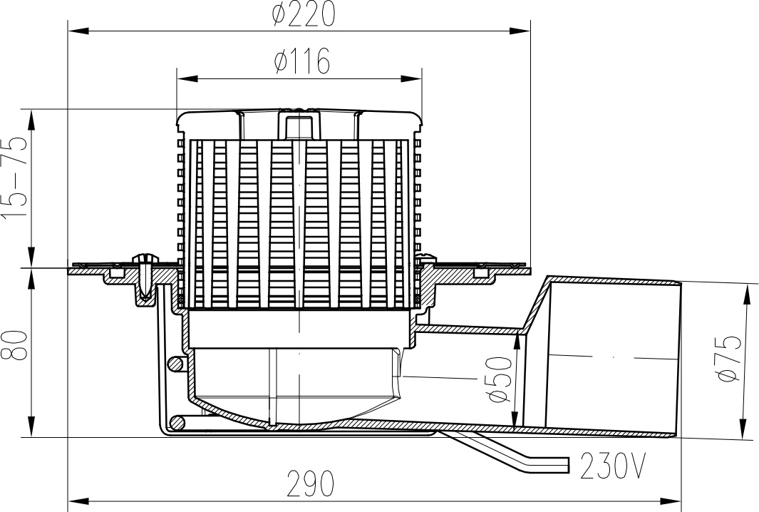 Drenaje de terraza lateral D50/75, ala, cable calefactor 10W