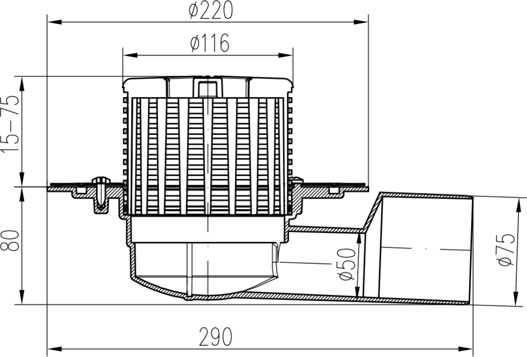 Drenaje de terraza lateral D50/75, ala