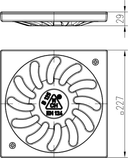 Desagüe lateral D110-250 válvula seca, rejilla de hierro fundido SPACE 3291 S
