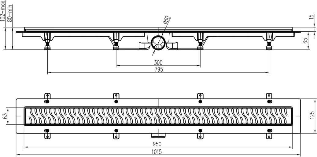 Sumidero lineal con desagüe lateral D50, 950 mm, rejilla Line mate