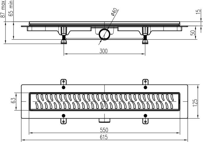 Sumidero lineal, desagüe lateral, D40, 550 mm, rejilla Klasik/Floor mate