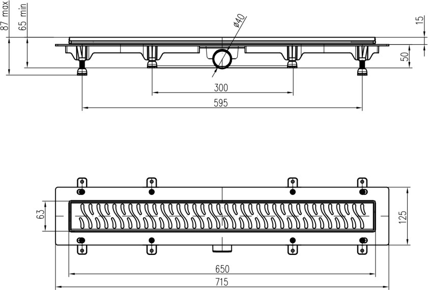 Sumidero lineal, desagüe lateral, D40, 650 mm, rejilla Line mate