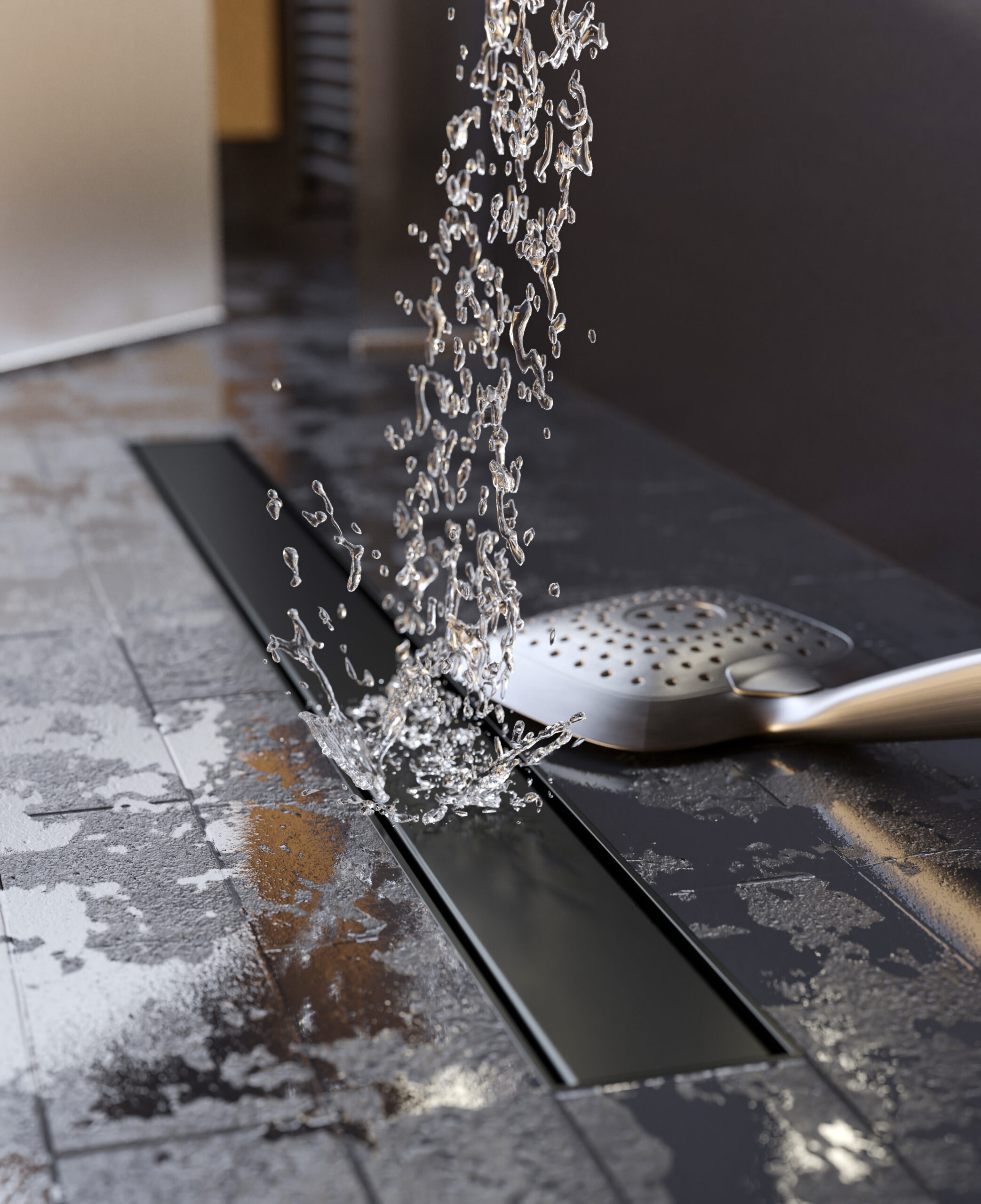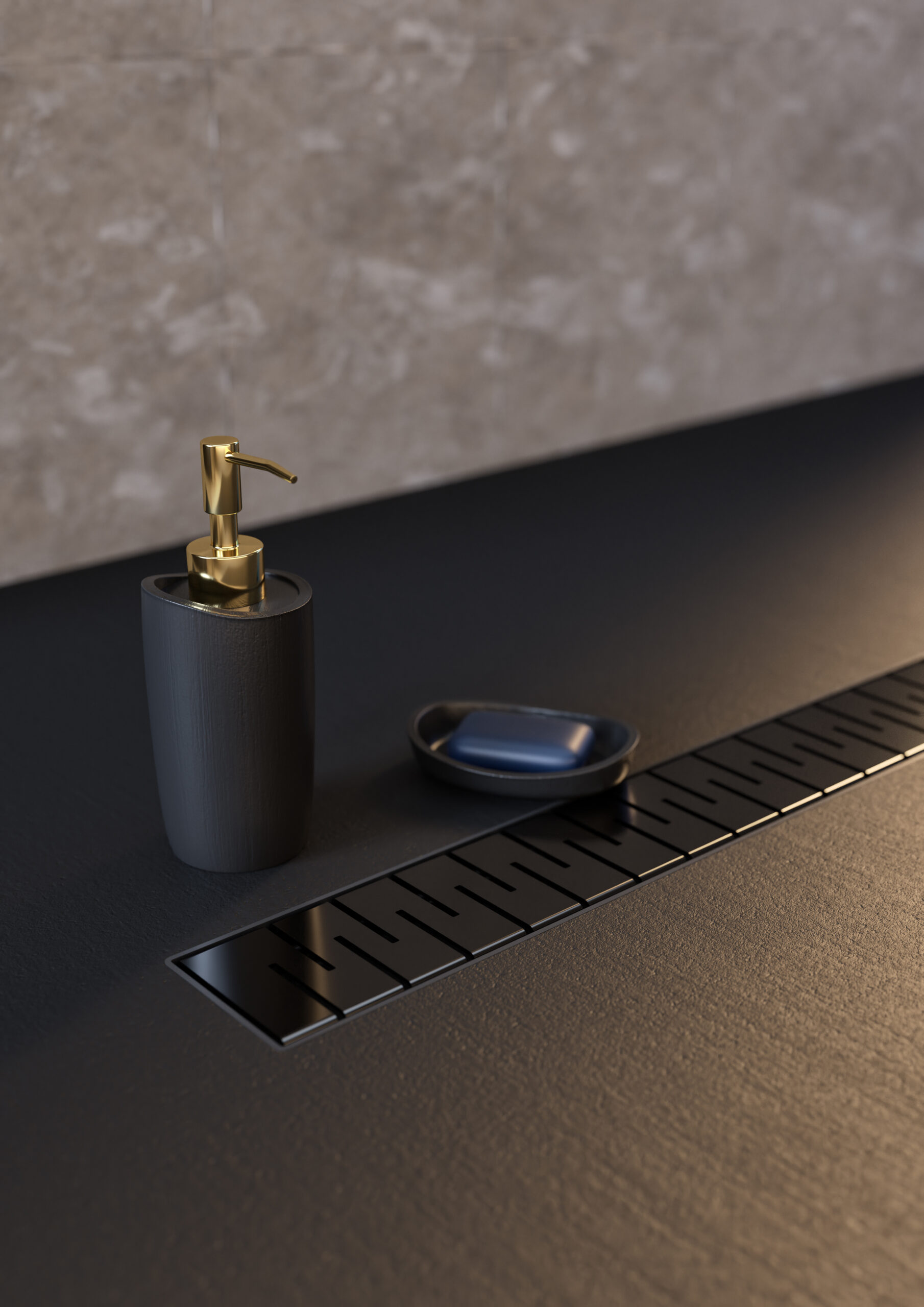 Sumidero lineal negro de pared, desagüe lateral D40, 450 mm, rejilla Klasik negra