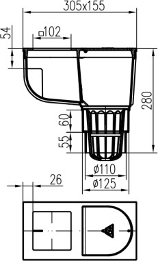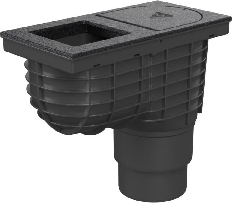 Trampa de sedimentos de tejado inferior D110/125, superficie de fundición, para bajante cuadrado 100