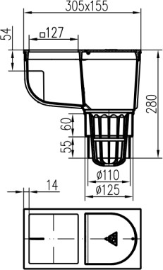 Trampa de sedimentos de tejado inferior D110/125, superficie de fundición, para bajante cuadrado 125