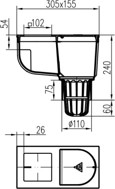 Trampa de sedimentos de tejado inferior D110, superficie de fundición, para bajante cuadrado 100