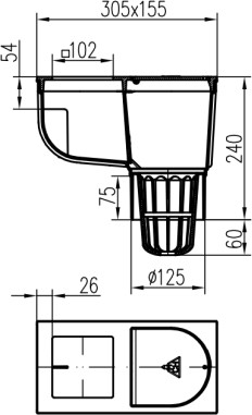 Trampa de sedimentos de tejado inferior D125, superficie de fundición, para bajante cuadrado 100