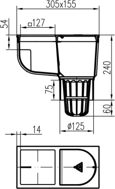 Trampa de sedimentos de tejado inferior D125, superficie de fundición, para bajante cuadrado 125